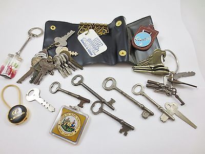 Antique Vintage SKELETON KEY lot with Key Chains Wallet