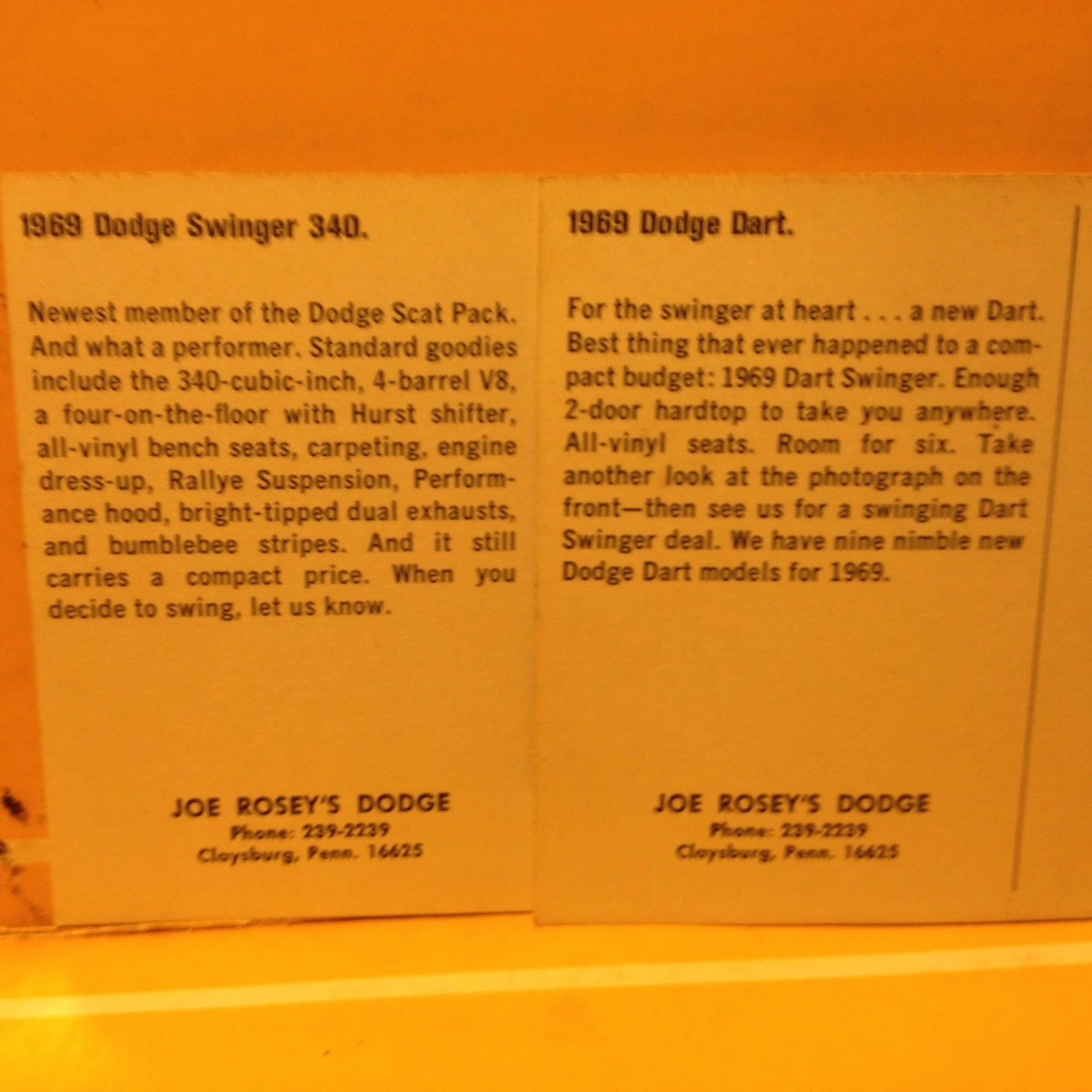 TWO-1969 Dodge Charger Postcard Sales Brochure Original 69 SAME AS GENERAL LEE