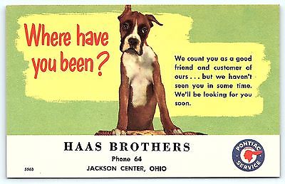Ad Card Pontiac Auto Service Reminder Boxer Dog Haas Brothers Jackson Center OH