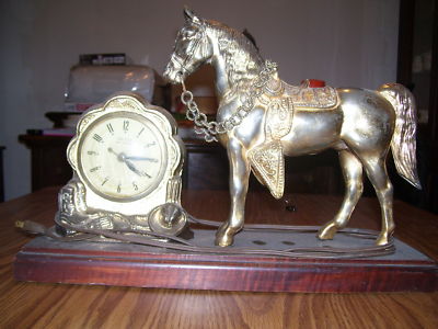 ANTIQUE COLLECTIBLE BRASS HORSE CLOCK