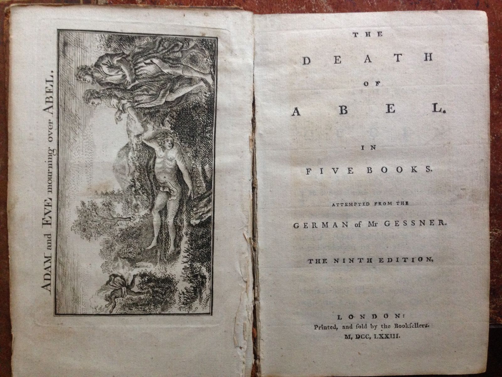 Title (ebay affiliate link): 1773 The Death of Abel in Five Books attempted from the German of Mr. Gessner