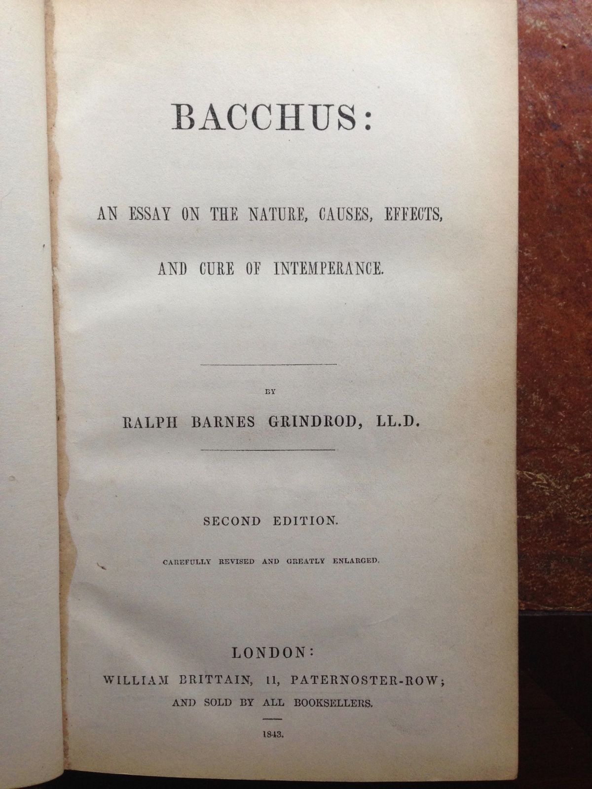 Title (ebay affiliate link): Bacchus: an Essay on the Nature, Causes, Effects and Cure of Intemperance - 1843