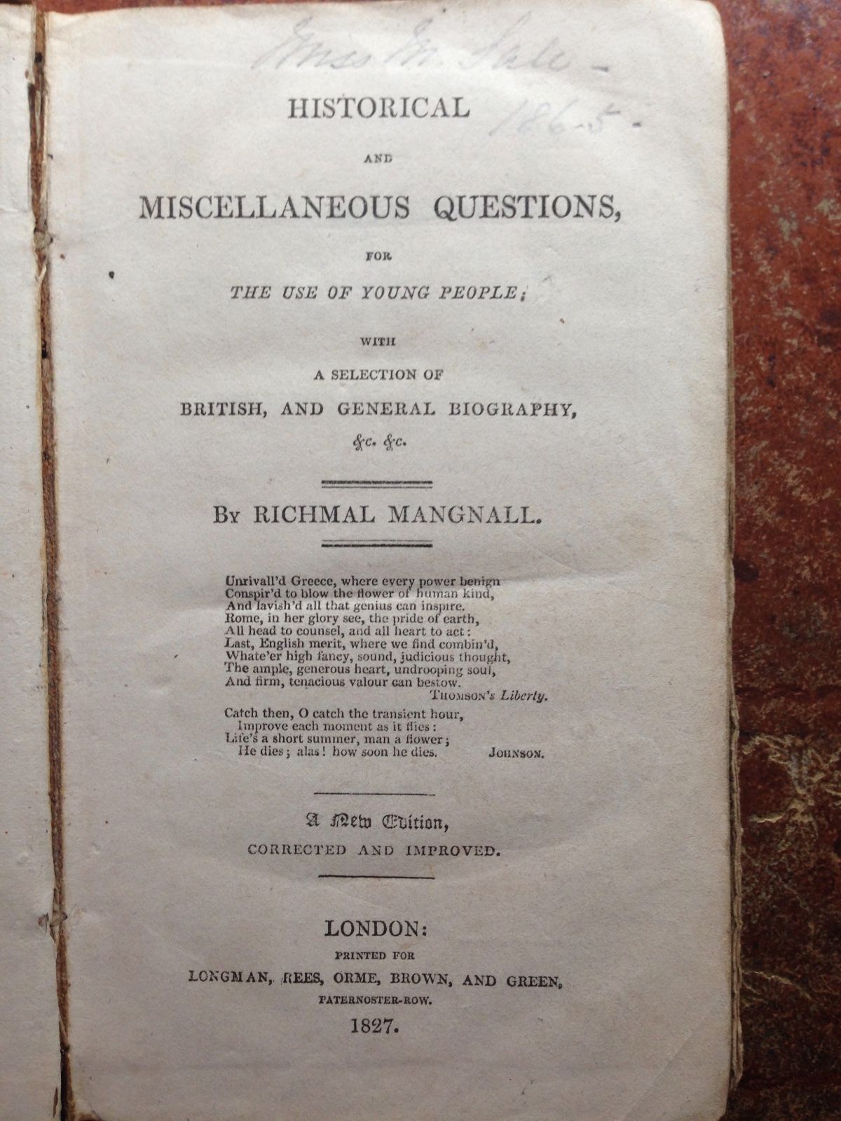 Title (ebay affiliate link): Historical and Miscellaneous Questions Richmal Hangnall -1827