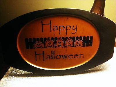 Title (ebay affiliate link): FOLK ART HANDPAINTED WOOD HAPPY HALLOWEEN PUMPKIN TRAY SHELF SITTER SIGN
