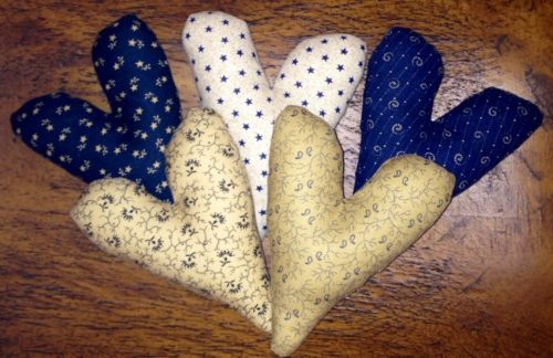 Title (ebay affiliate link): Primitive Heart Bowl Fillers Navy Blue/Beige Print