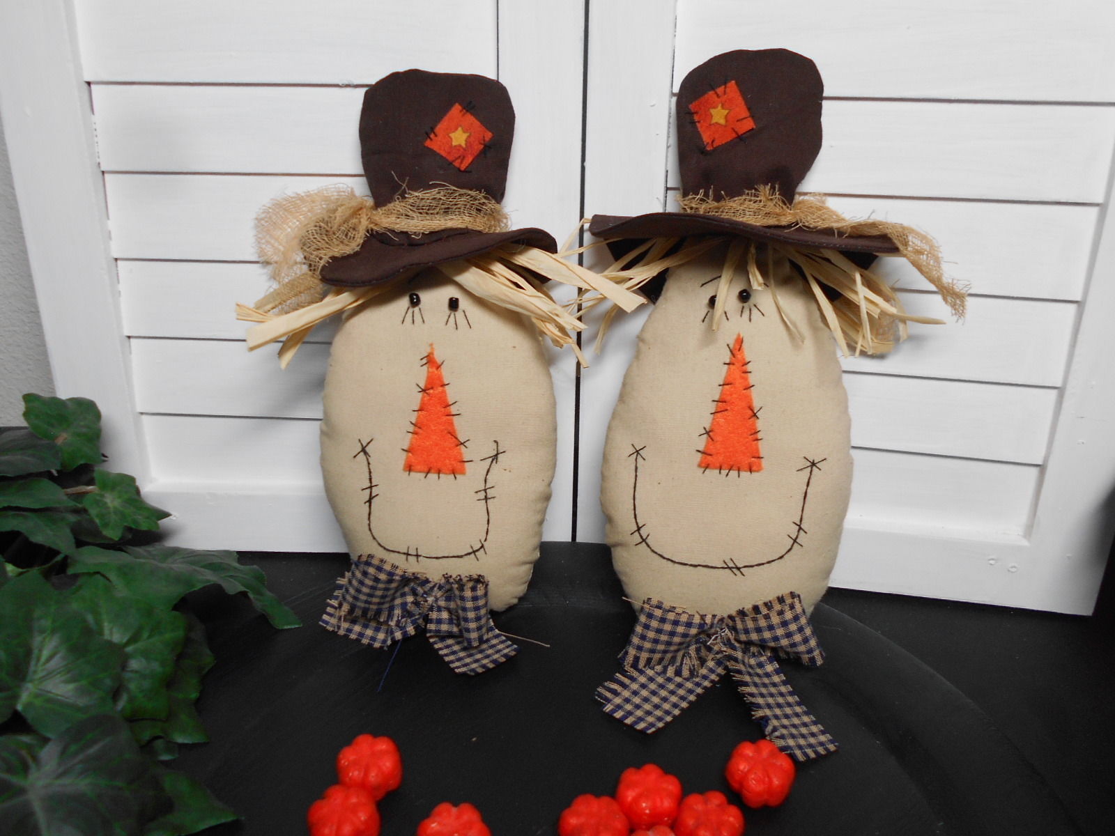 Title (ebay affiliate link): 2 Primitive Halloween Fall Scarecrows Bowl Filler Ornie Shelf Sitter
