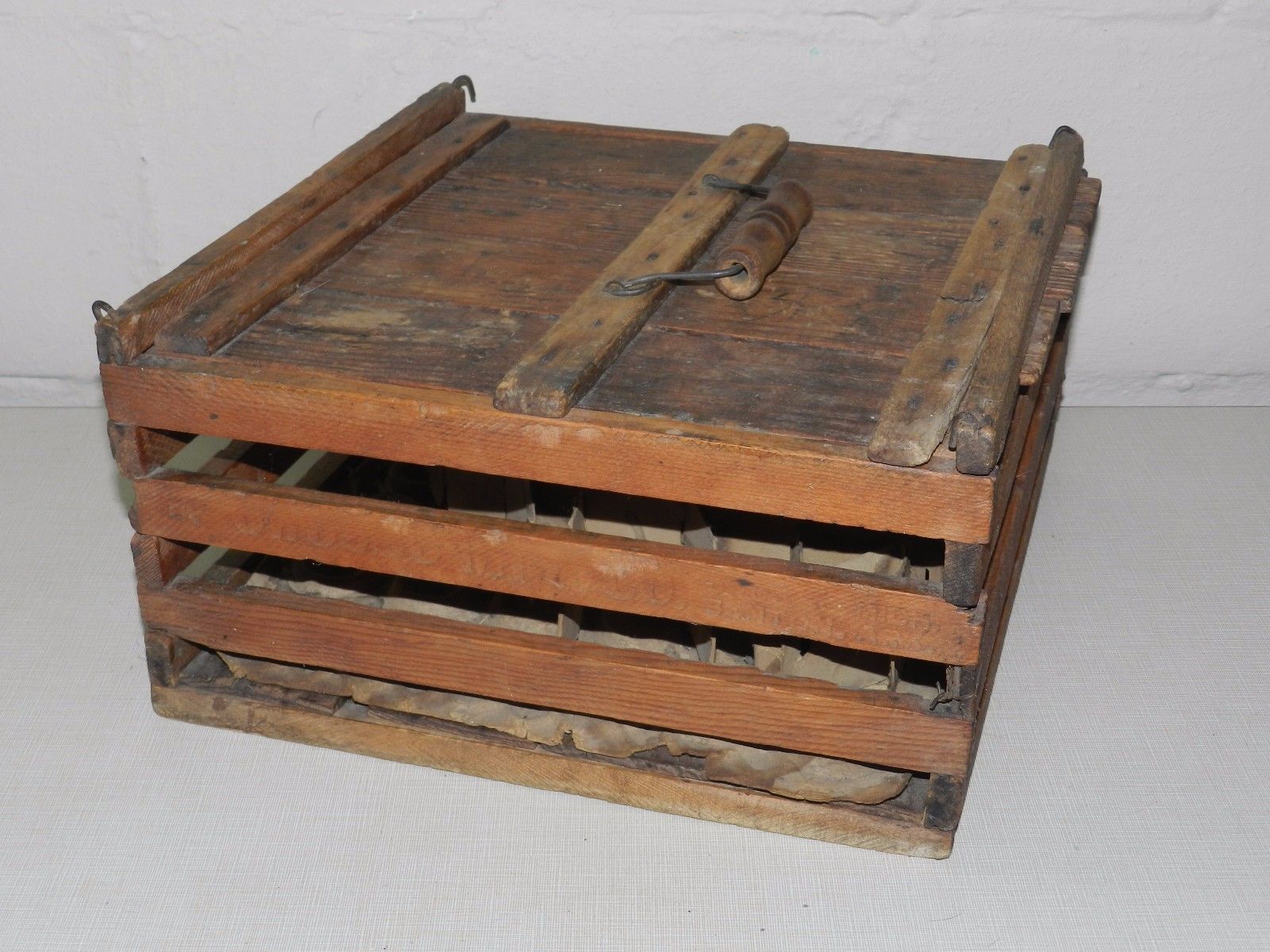 Title (ebay affiliate link): Vtg Antique Primitive Wood Egg Basket Crate Carrier Chicken Eggs Bale Handle