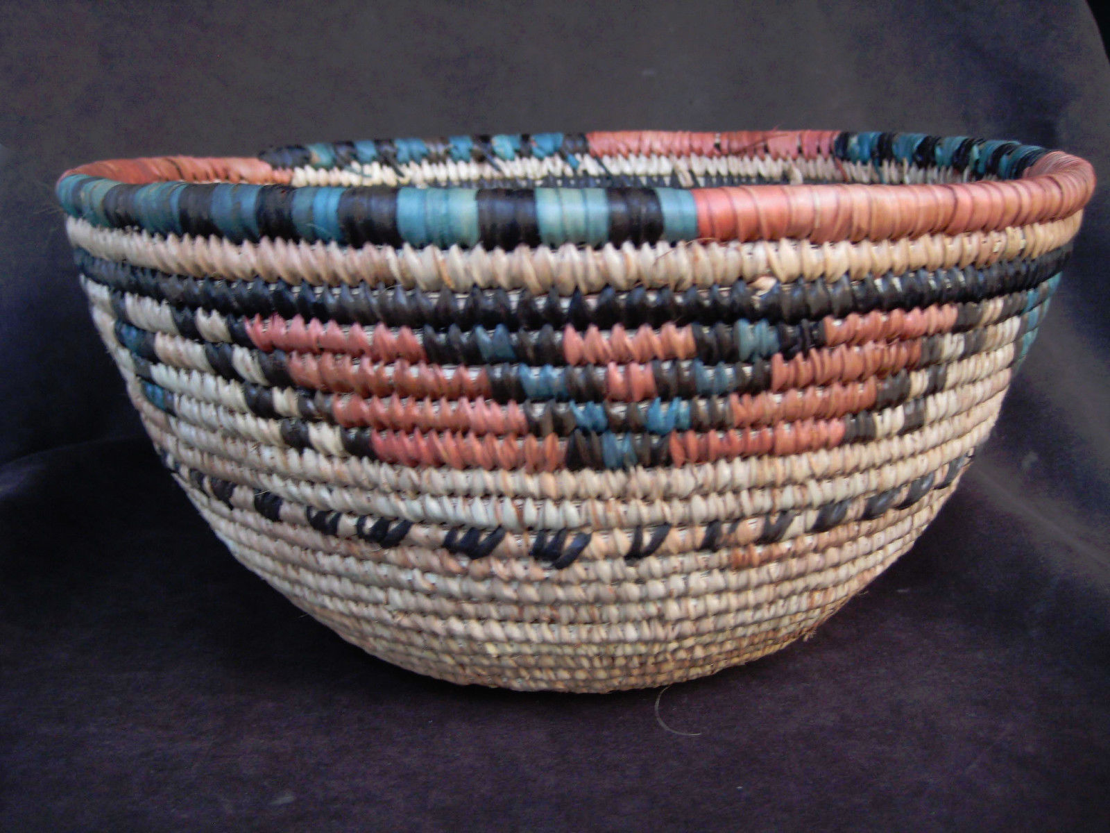 Title (ebay affiliate link): Primative Old Colorful Hand Woven Basket