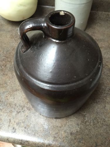 Primitive Antique Pottery Dark Brown Crock Jug Stoneware