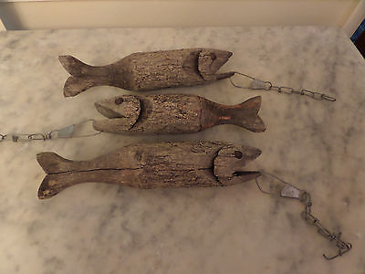Title (ebay affiliate link): Hand Carved with bark--trio of fresh catch fish with unique chains attached