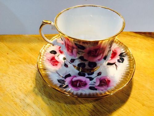 Title (ebay affiliate link): Elizabethan Fine Bone China Tea Cup and Saucer Gold Rim Double Rose