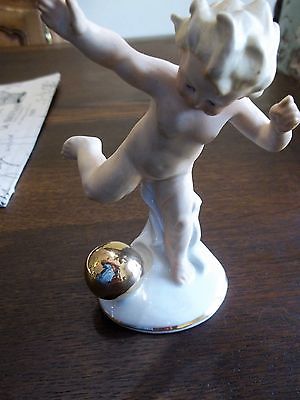 Vintage Germany Porcelain Nude Cherub Boy ball gold