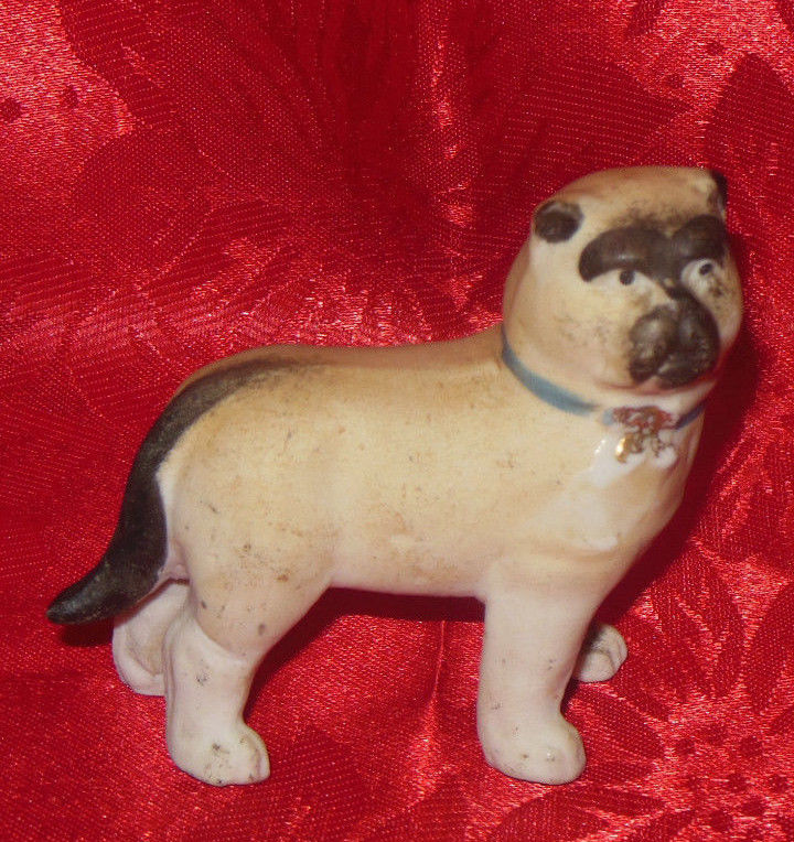 Antique standing Miniature Staffordshire PUG tail out 2 1/2" tall