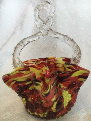 Title (ebay affiliate link): Unique Vintage Czech Art Glass Basket With Thorn Handle Beautiful!!!