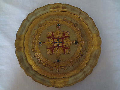 Vintage Florentine Wood Gold Gilt Toleware Tray Lavorazione, Italy