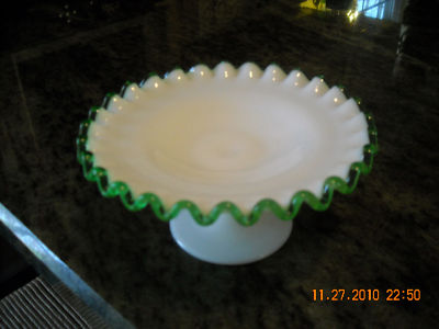 Fenton Milk glass Emerald crest candy candle stand