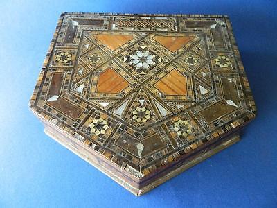 Wonderful Syrian Inlaid Parquetry Wood & Pearl Shell Box c1890s