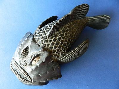 Antique Wooden Carved Grotesque Fish Stone Fish Gurnard Japan 1900s