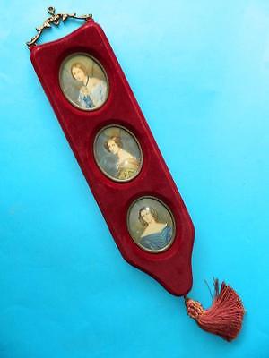 3 Framed Hand painted miniature portraits Velvet Wall Panel Italy c1950s