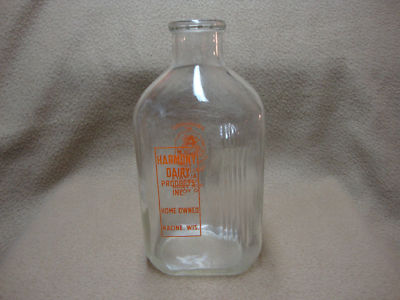 Vintage Glass 1/2 Gal. Milk Bottle Harmony Dairy Ra. WI