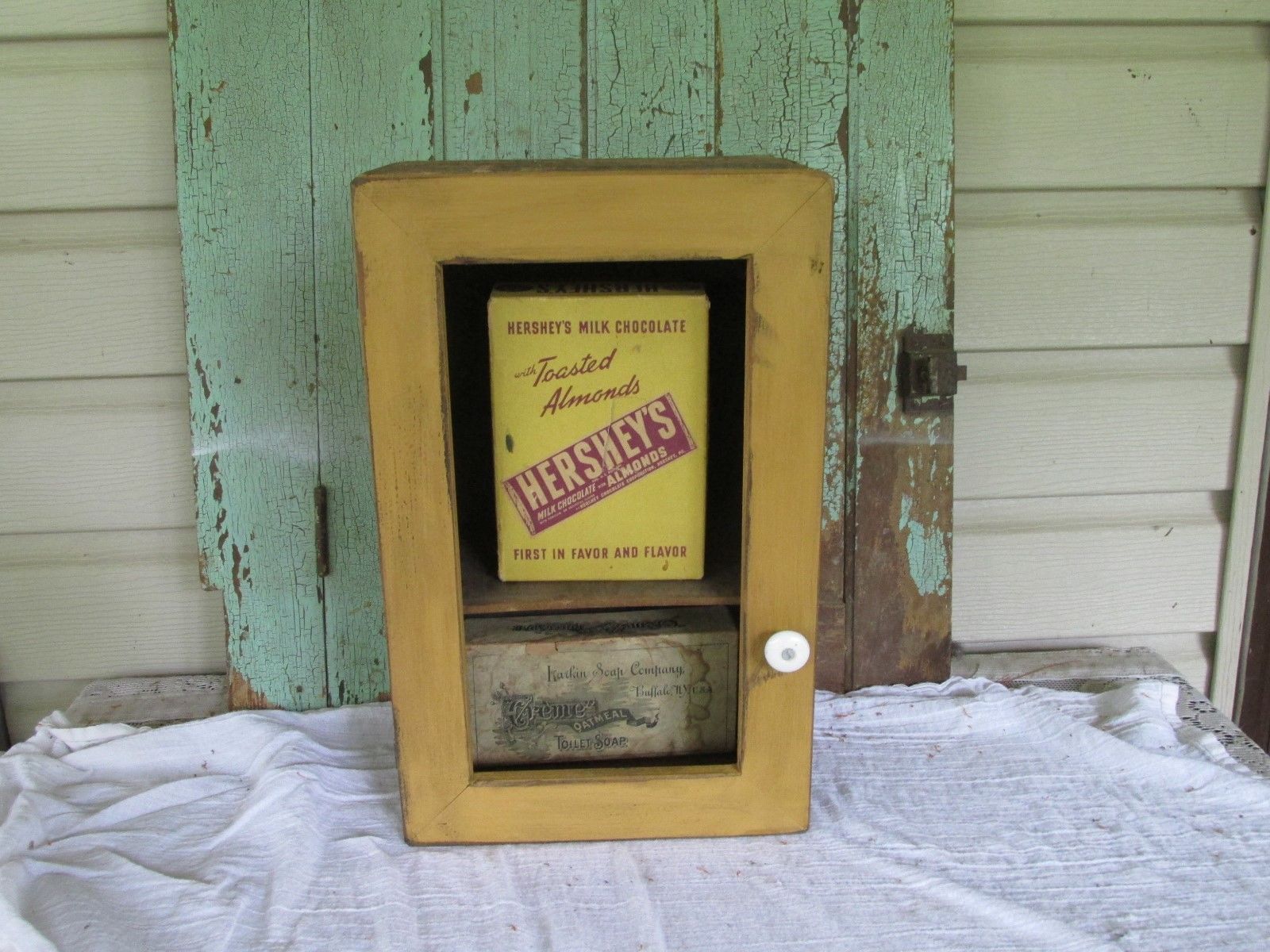 Title (ebay affiliate link): ANTIQUE VINTAGE MAKE DO CUPBOARD WITH OLD BOXES