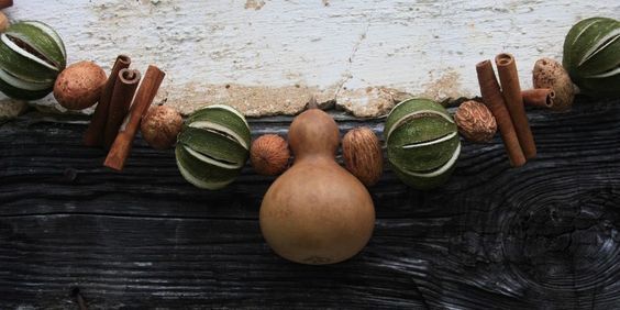 Title (ebay affiliate link): PRIMITIVE LIME NUT GOURD & CINNAMON GARLAND * NATURAL DECOR COLONIAL FARMHOUSE
