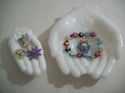 Title (ebay affiliate link): Vintage Milk Glass hands Avon Hand LargeSmall Flowers leaves Bows Estate Find