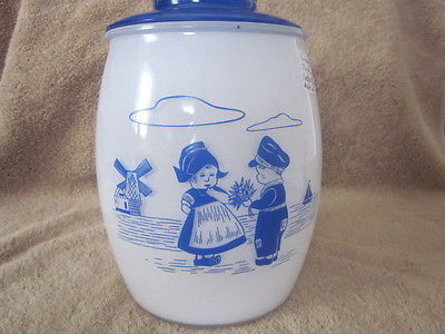 Vintage Fire King Canister Milk Glass Holland Dutch Boy Girl with Lid