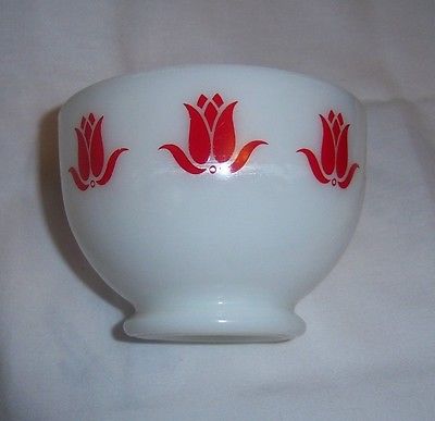 Title (ebay affiliate link): VINTAGE FIRE KING COTTAGE CHEESE TULIP MILK GLASS RED FOOTED BOWL