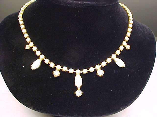 Vintage Goldtone Milk Glass & Rhinestone Necklace