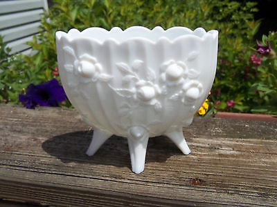 Elegant Fenton Art Glass Rose Pattern Milk Glass 5" Oval Footed Vase