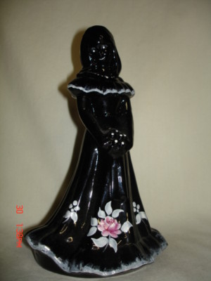 Fenton Bridesmaid Doll-Black Milk Glass Pink Roses 2008