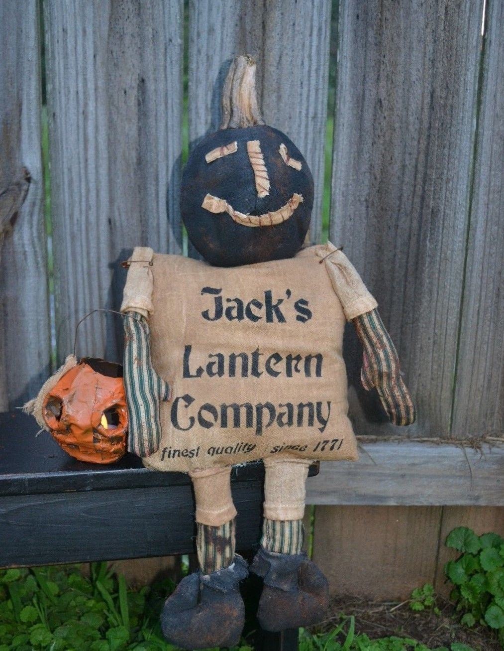 Title (ebay affiliate link): PRIMITIVE Halloween Black Pumpkin Jack O Lantern Doll With Tiny Light Up JOL SMP
