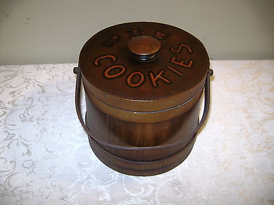 Title (ebay affiliate link): Antique Primitive Shaker Firkin Cookie Jar Wood Sugar Bucket Painted Lid