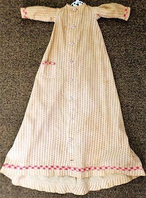 Antique China Doll Woven Stripe Cotton Day Dress Glass Calico Button 23" Long !!