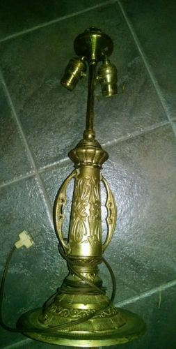 Vintage Tiffany style lamp base, double socket, gilded metal