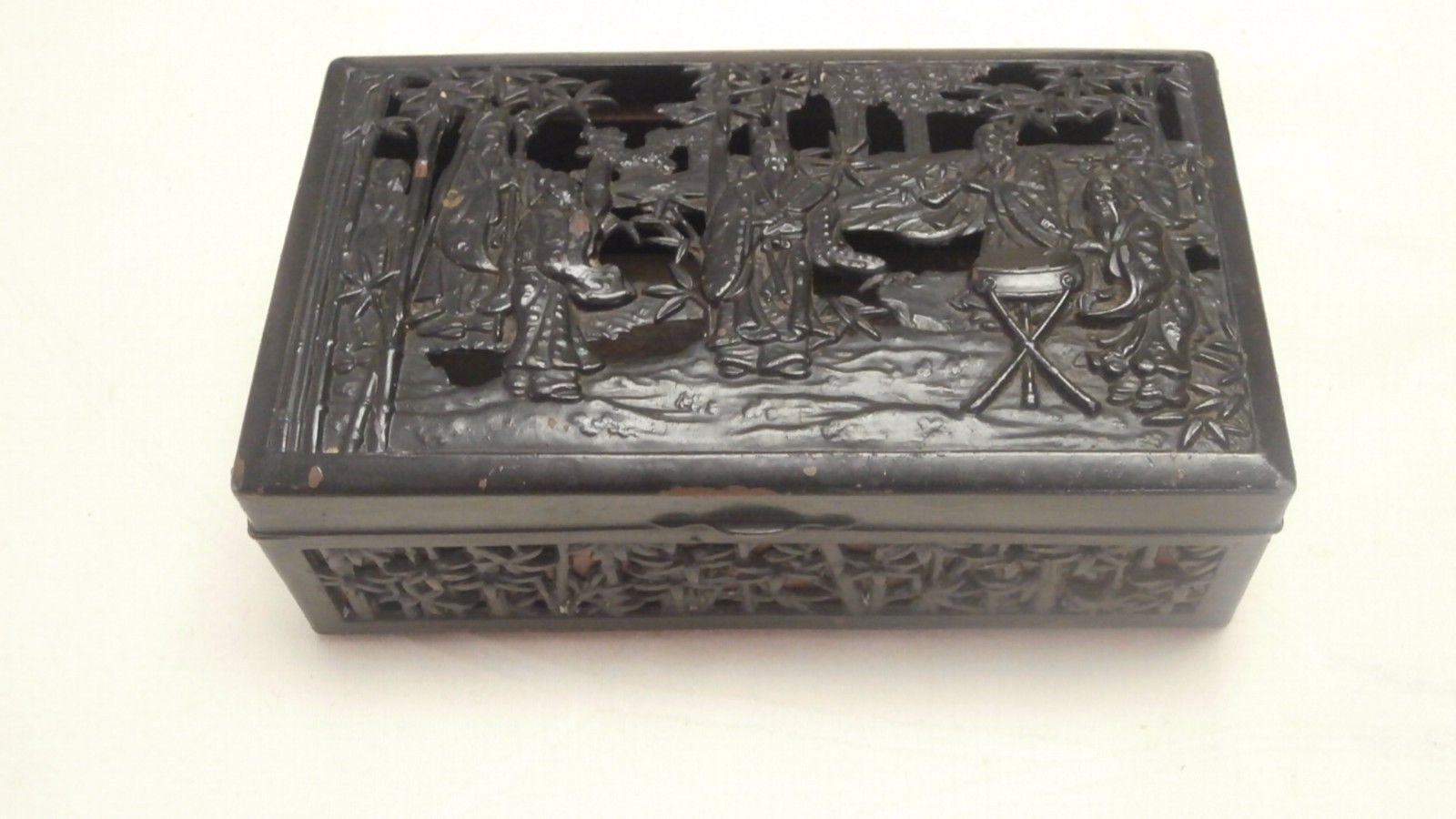 ANTIQUE ANGLO INDIAN WOOD BOX WITH METAL