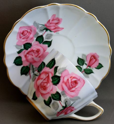 OLD ROYAL TEACUP AND SAUCER-PALE BLUE/PINK ROSES J 606