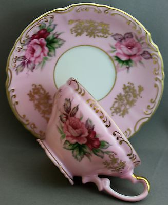SHAFFORD HAND PAINTED TEACUP AND SAUCER-PINK/PINK ROSES J 619