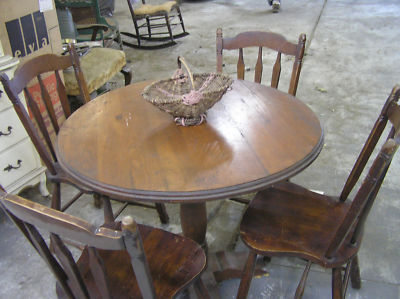 Title (ebay affiliate link): ANTIQUE,VINTAGE,OLD WOOD ROUND DINING TABLE & CHAIR SET