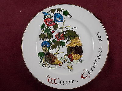 Antique 1880 Porcelain Haviland Limoges Christmas Plate Walter Chicken Family