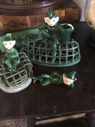 Lot Vintage Ceramic Green Pixies Elves Christmas
