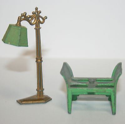 Vintage Antique Tootsietoy Tootsie Toy Green Settee Chair Floor Lamp Furniture