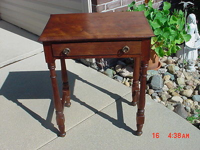 Antique Primitive Solid Walnut Wooden Table One Drawer Stand Small Work Side