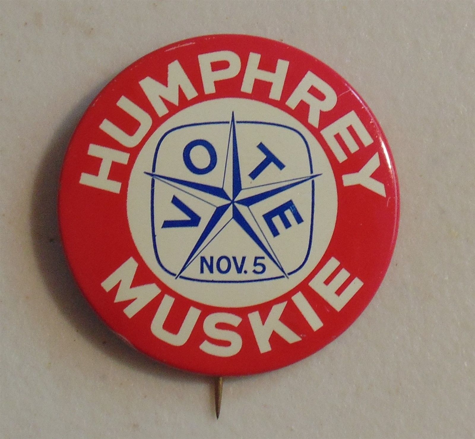 Hubert Humphrey Muskie 1968 campaign pin button political