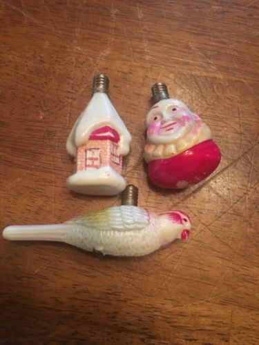 Title (ebay affiliate link): ANTIQUE FIGURAL CA 1930 FIGURAL CHRISTMAS ORNAMENT LIGHT BULBS