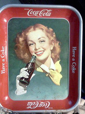 Title (ebay affiliate link): VINTAGE 50'S COCA COLA TRAY - REDHEAD W/ GLOVES & YELLOW SCARF - ORIGINAL