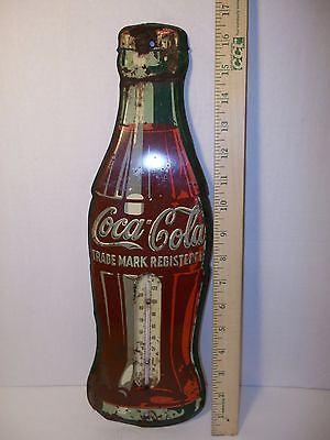 Vintage 1950's Coca-Cola Wall Thermometer 17" Flat Tin Working GC