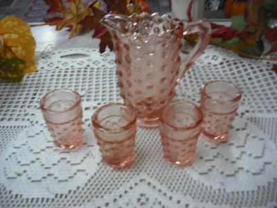 Title (ebay affiliate link): ADORABLE 5 PC HOBNAIL PINK DEPRESSION CHILDS JUICE SET
