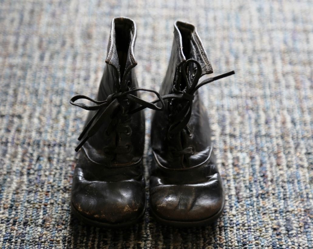 Title (ebay affiliate link): Lovely Antique Black High Leather Baby or DOLL BOOTS Shoes Black Laces